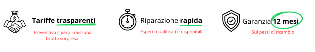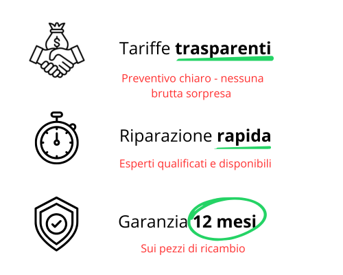 Prima di qualsiasi intervento, effettuiamo una diagnosi completa al costo di 50 €, che è inclusa nel prezzo totale della riparazione. In questo modo conoscerete il costo esatto prima di impegnarvi, in totale trasparenza.